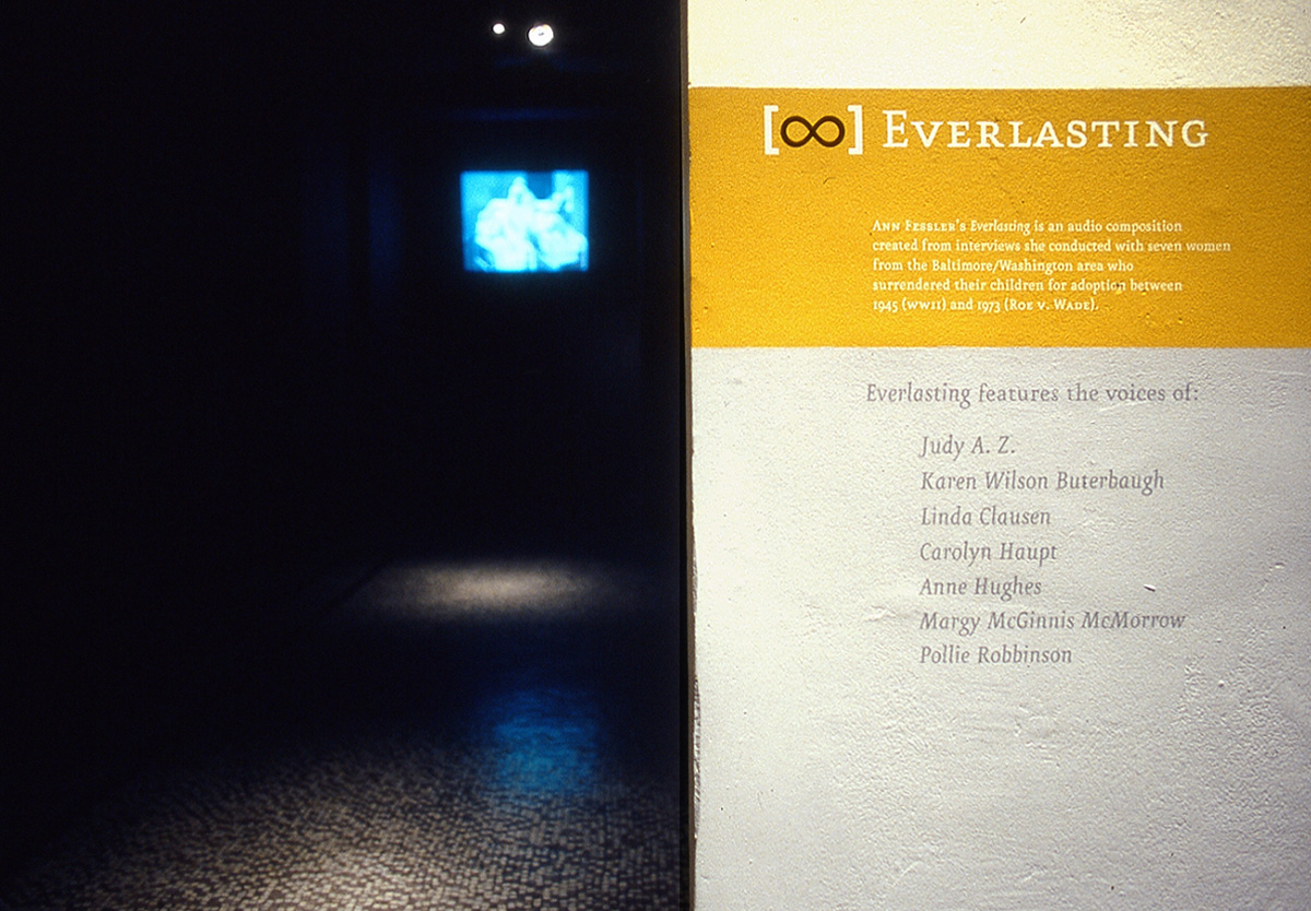 Everlasting: Baltimore was the first audio installation created by Fessler from oral history interviews she conducted with mothers who lost children for adoption. It premiered at the Maryland Institute College of Art in Baltimore in January of 2003, and included an expanded version of her previous 2001 Close to Home installation, thereby pairing the story of Fessler’s search for her mother with the stories of mothers who lost children to adoption.