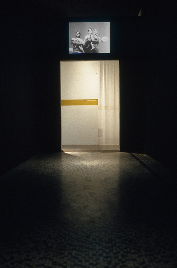 Viewers then enter a long, dark corridor, illuminated by a video loop depicting a never-ending stream of newborn babies being wheeled by nurses though a hospital doorway. As they move towards the video they discover at the end of the corridor a large room with a circle of chairs and an invitation to sit and listen to the surround-sound audio composition created by Fessler from oral history interviews she conducted with seven women from the Baltimore/Washington area. The five-channel audio piece, structured like a musical score, emanates from five separate speakers hidden on the perimeter of the room. The audio piece sounds at times like a conversation, and at other times like a cacophony of voices that raise the emotional and auditory pitch to a level that drowns out individual experiences. This chorus of voices represents more than a million and a half women who found themselves in similar circumstances in the 1950s, 60s, and early 70s.