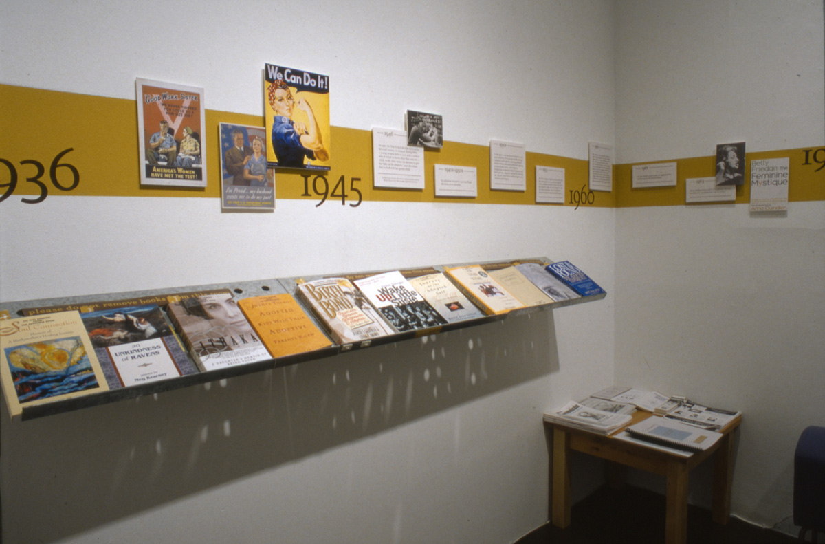 As viewers exit the hallway, they discover a Resource Room that provides historical context, handouts, a timeline, and research conducted by a team of students, as well as further readings and films suggested by the women featured in the exhibition.